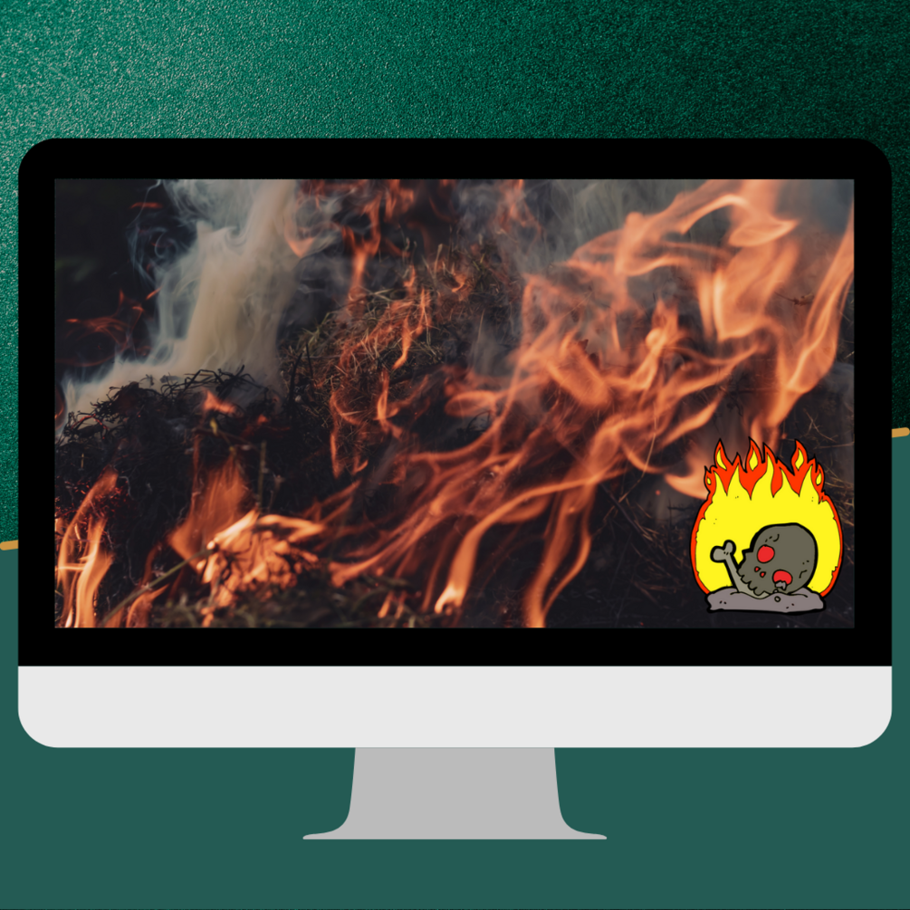 A Desktop wall paper featureing a skull on fire